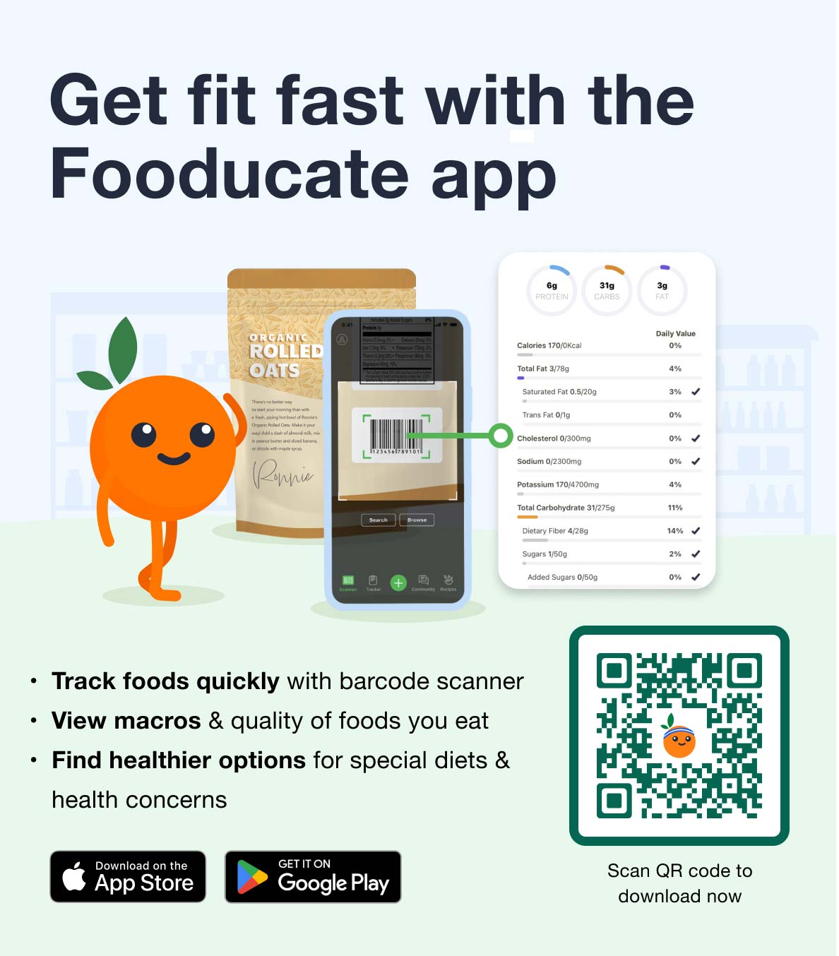I love the scanning feature. I love being able to decide which food to choose at the store. Too unhealthy? There's an alternative!